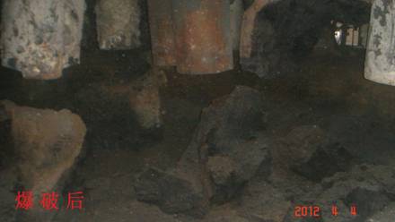 44,應云維乙炔化工有限公司(業主)要求,我項目部對其廠區1#電石爐內石墨電極成功實施分解爆破。