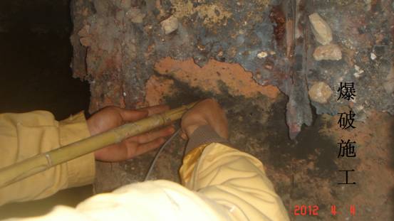 44,應云維乙炔化工有限公司(業主)要求,我項目部對其廠區1#電石爐內石墨電極成功實施分解爆破。