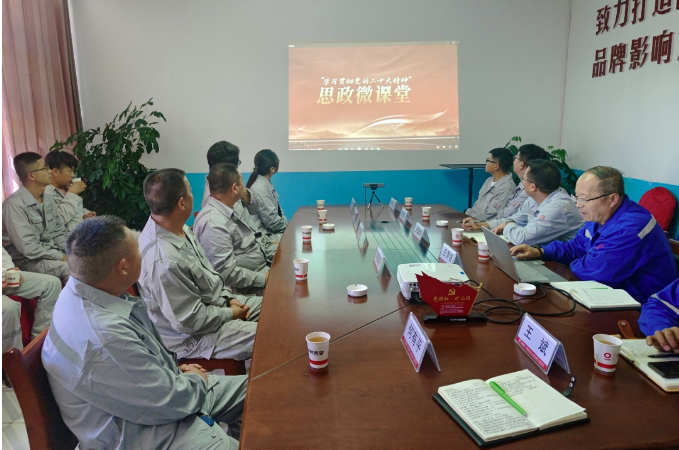 現場觀摩結束之后,全體人員集中觀看學習思政微課堂《學習貫徹黨的二十大精神》。中材西安岢嵐分公司經理王渭鋒對分公司的生產情況做了簡要介紹,參會人員就圍繞安全生產、控制爆破、形象建設、生態恢復、危廢處理、安全費用的提取和使用方面進行了廣泛細致的交流。